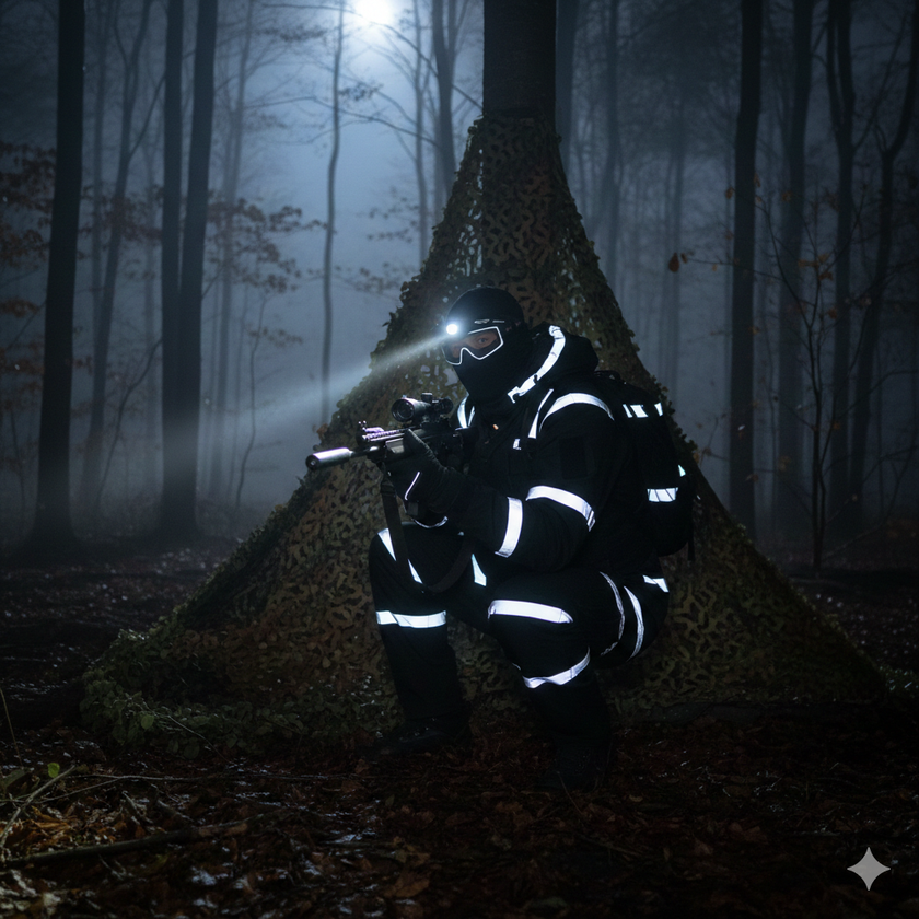 We provide the ultimate solution for safe and effective nighttime hunting. Our core offering is premium black reflective safety apparel—gear engineered for high visibility among human companions while maintaining maximum stealth from prey and predators. Beyond the gear, our comprehensive Night Operations Safety Courses equip hunters with the knowledge and skills to confidently manage common nighttime hazards and ensure preparedness in dark, extreme environments